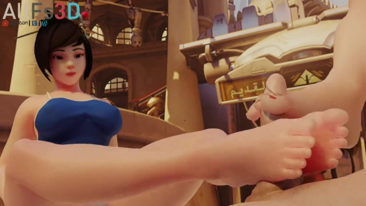 Мэй и Бригитта из игры Овервотч дрочат член ножками